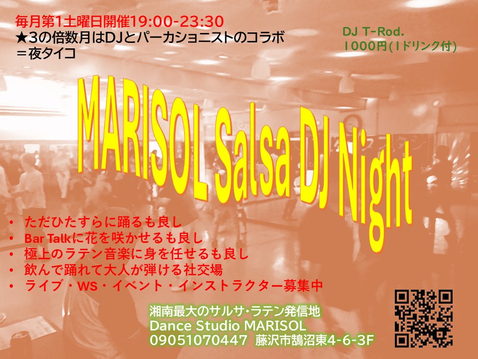 毎月第1土曜日夜定期開催のMARISOL Salsa DJ Night